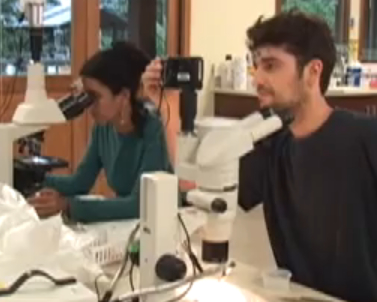Thomas Sauvage and Olga Camacho concentrating in STRI's Bocas del Toro Lab, Panama, in 2008